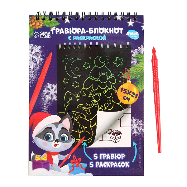 Формат 15x21 см удобен для использования дома и в дороге. В блокноте имеются 5 гравюрных листов и 5 раскрасок, что позволяет комбинировать технику гравирования и раскрашивания. Специальный карандаш в комплекте помогает создавать детали и эффектные изображения, развивая художественные навыки.