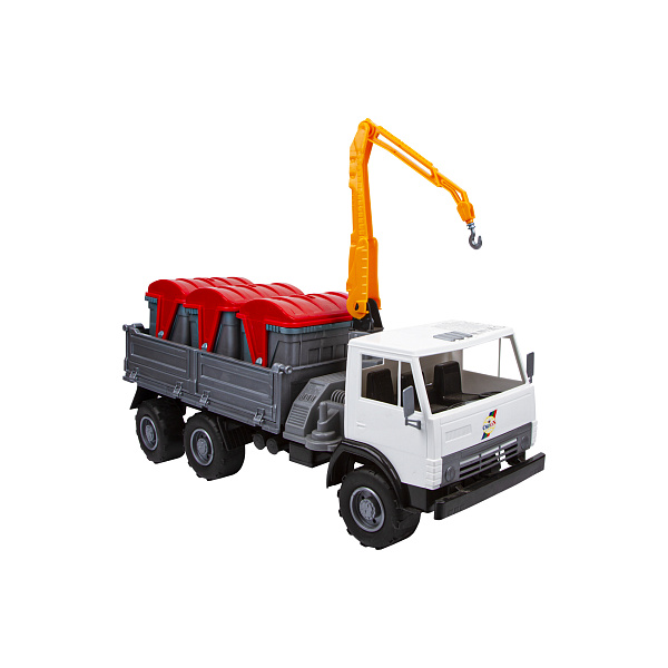Бортовой грузовик с манипулятором в комплекте – модель из серии специализированных автомобилей, которая понравится юному автомобилисту старше 3 лет. Транспорт оснащен крепкими колесами, с помощью которых он может совершать крутые виражи, функциональными элементами и привлекательным дизайном в ассортименте. Грузовик изготовлен из сертифицированного полипропилена, который не содержит в составе опасных для жизни и здоровья ребенка химических соединений. Пластик не подвергается деформациям, устойчив к различным механическим соединениям и воздействию ультрафиолетового излучения.
