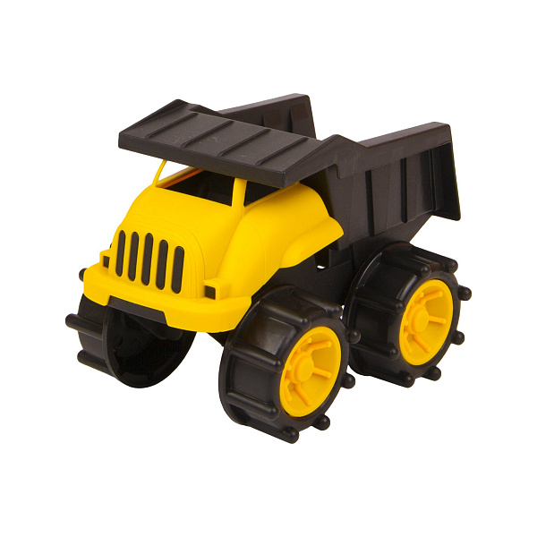 С самосвалом можно играть дома, на улице и в песочнице, а также в компании друзей. Это простая, но функциональная игрушка с подвижными массивными колесами, благодаря которым самосвал проедет по любой дороге.
