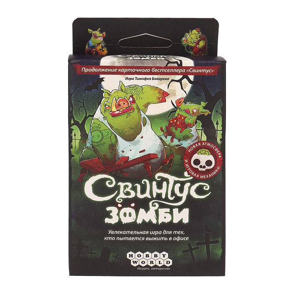 Захватывающая игра «Свинтус: Зомби» – это продолжение популярной серии карточной игры. Ее цель осталась прежней – избавиться от всех карт на руках, но сделать это гораздо сложнее и интереснее. Наступил зомби-свинтус-апокалипсис и игроков преследует опасный вирус, от которого спасет только вакцина.