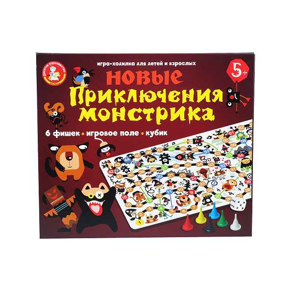 Этот набор представляет собой настольную игру-бродилку с интересной историей и красочным оформлением. В соответствии с сюжетом, маленький Монстрик потерял маму. Ему предстоит пройти полный приключений путь, чтобы добраться до места ее пребывания.