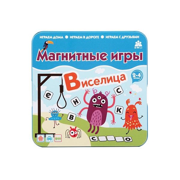 Родители чудесно помнят такую игру на бумаге, а вот детям придется по душе более современный настольный вариант «Виселицы»! Теперь не нужно носить с собой тетрадку и ручку, достаточно достать из коробки две магнитные доски — одна для «палача», а вторая — для загаданного слова. Нужно поочередно брать буквы, пытаясь максимально быстро отгадать загадку. При каждой ошибке на виселице поочередно будут появляться части тела космического пришельца, пока монстрик либо погибнет, или сообразительный игрок смоет его спасти. Игру можно легко брать с собой в дорогу, развивать логику и скорость мышления в компании 2-4 друзей. Это увлекательное и познавательное занятие для детей старше 8 лет.