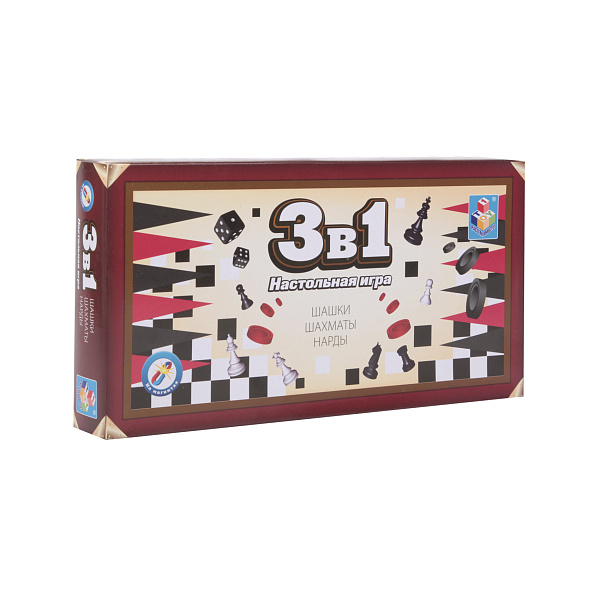 Увлекательная настольная игра состоит из 3 комплектов: шахмат, шашек и нард. В комплект входит поле для размещения шахмат и шашек, изготовленное из пластика. Клетки игрового поля и шашки с шахматами оснащены небольшими магнитами, благодаря чему при резком движении или при наклоне доски они не разлетаются и не перемешаются. Таким образом, игра не прервется. Шашки выполнены в красном и черном цвете, белые и черные шахматы сделаны качественно из прочного пластика.
