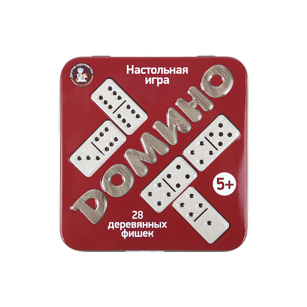 Игра настольная Десятое королевство Домино деревянное в жестяной коробке 28фишек