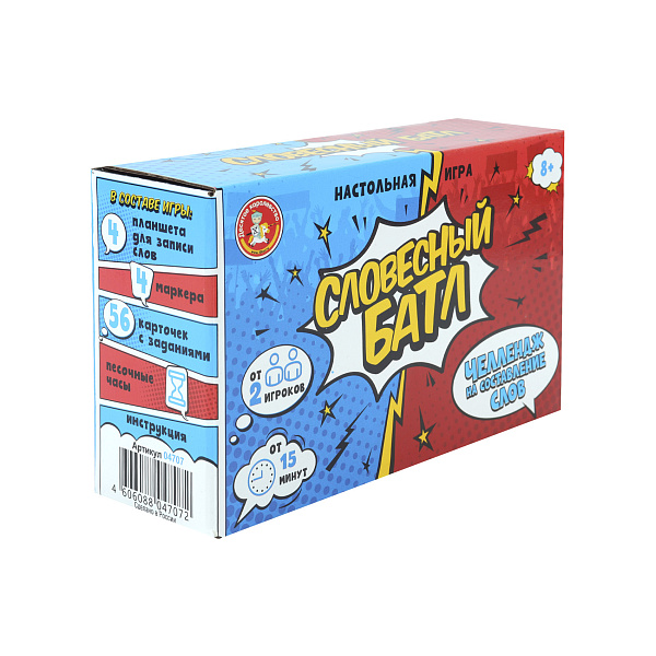 В набор входят песочные часы для отсчета времени, 4 шаблона для написания слов, 56 заданий на отдельных карточках, фломастеры на водной основе. Разобраться с правилами поможет подробная инструкция.