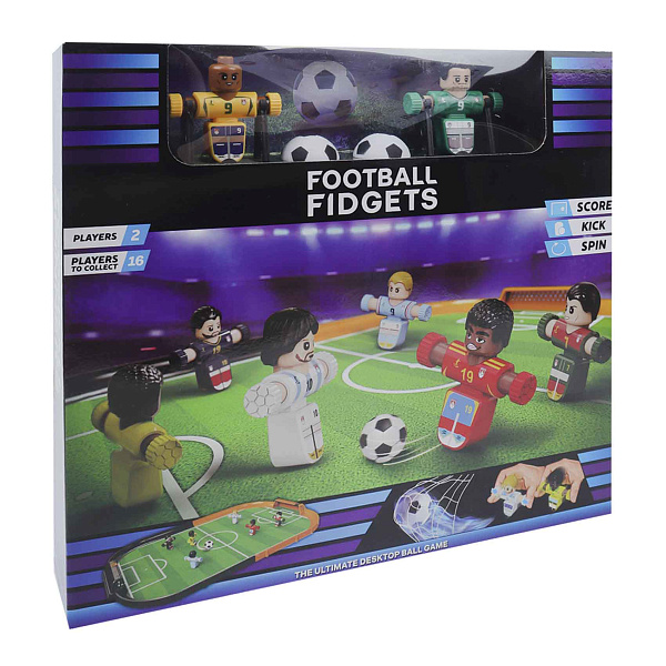 Настольная игра «Football Fidgets» — это динамичный и увлекательный мини-футбол для двоих игроков, созданный для развития реакции, координации и спортивного азарта. Игровое поле размером 86х60 см имитирует настоящий стадион с разметкой, воротами и сетчатыми бортами, а фигурки игроков выполнены в виде подвижных «фиджетов» с ручками для удобного управления.