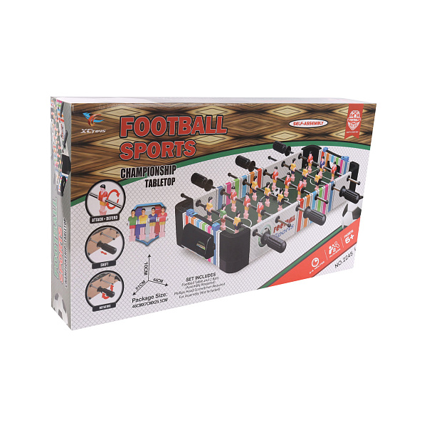 Почувствовать себя настоящими футболистами теперь можно не выходя из дома вместе с «Настольным футболом». Набор состоит из игрового поля с закрытыми бортиками. Через него проходят металлические прутья с надетыми на них игроками и удобными ручками на концах. Они нужны, чтобы управлять своей командой и не дать сопернику забить гол. Игрушка компактная и легко поместится даже на журнальном столике.