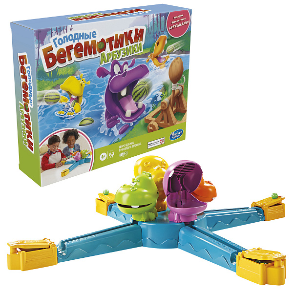Игра идеально подойдет для детской компании или вечера в семейной кругу. В наборе 1 база, 4 бегемотика, 4 рампы, 4 пусковые установки, 20 пластиковых арбузов, правила игры.
