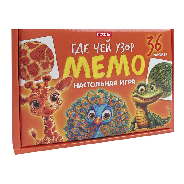 Настольная игра Hatber «Мемо. Где Чей узор» состоит из 36 картонных карточек – 18 пар с изображениями животных и их узоров. Карточки имеют закругленные углы и матовую ламинацию с обеих сторон, что делает их удобными и безопасными для игр малышей. Есть три варианта игры: «Где чей узор», «Найди пару» и «Кто убежал», которые развивают внимание и память.