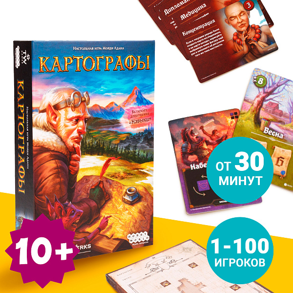Захватывающе провести время с друзьями поможет увлекательная настольная игра «Картографы». Сюжет игры заключается в составлении карты для королевы, где каждый участник является автором. Примечательность настольной игры – нестандартный игровой механизм рисования, превращающий каждую партию в веселую игру. Участие привлечет опытных игроков и новичков, а также поможет быстро освоить игровой сюжет. В раунде может участвовать как один, так и несколько человек.