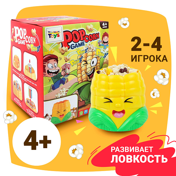Игра вызовет неподдельный интерес у детей старше 4 лет. Победителем станет самый ловкий участник, сумевший поймать бумажным стаканчиком наибольшее количество попкорна. Само слово «попкорн» переводится как «выстрелившая кукуруза». Именно на этом свойстве кукурузных зерен и основана данная забава. Миниатюрные предметы будут поочередно вылетать из пускового устройства, внешне похожего на початок. Ловить их необходимо разноцветными стаканами, входящими в игровой набор.