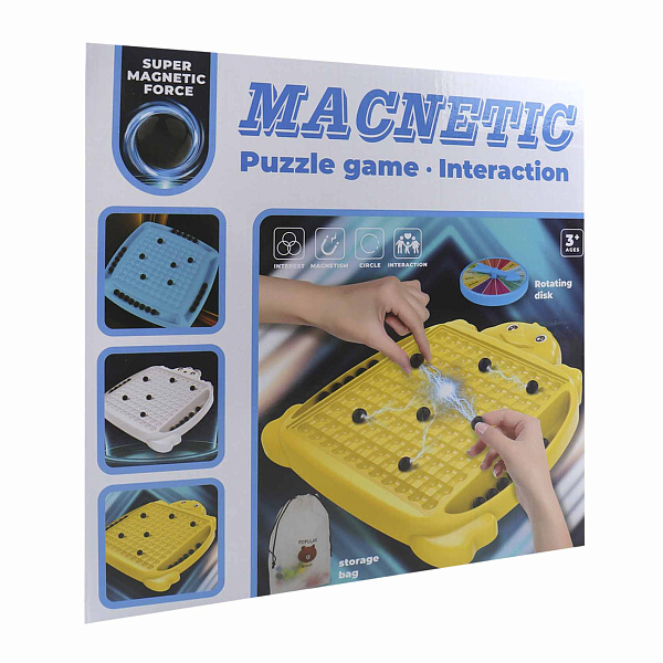 Это увлекательная настольная игра, сочетающая в себе элементы головоломки и соревнования, которая развивает логическое мышление, координацию и реакцию. Игровое поле выполнено из прочного пластика в виде квадратной доски с рельефной сеткой углублений, куда помещаются маленькие гладкие шарики. По бокам доски предусмотрены специальные отсеки для хранения шариков, что делает игру компактной и удобной для переноски. Правила просты: игроки по очереди перемещают шарики по полю, стараясь не собрать магниты противника, что требует стратегического мышления и внимательности.