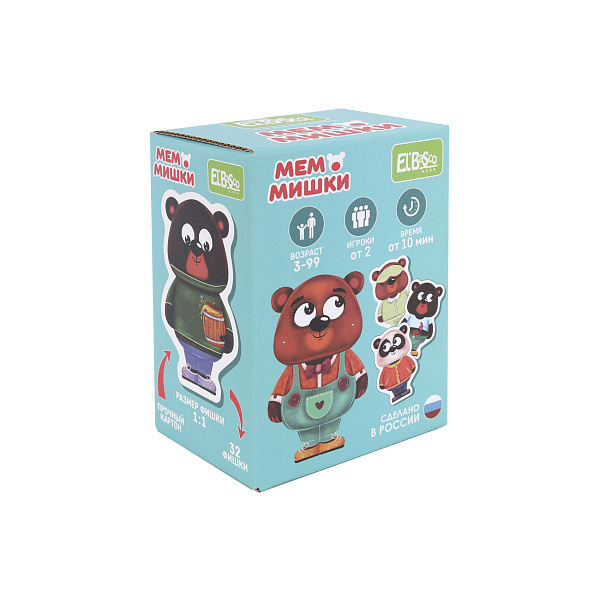 Настольная игра «Мемо Мишки», не только интересная, но и полезная. Внутри коробки малыш найдет 32 фишки в виде смешных медведей. Каждый мишка встречается по два раза, всего их 16 вариантов. Подобные мемо-игры пользуются популярностью во всем мире. Правила понятные и простые: хорошо перемешать и выложить фишки картинкой вниз, а затем постараться найти одинаковые карточки. Если игрок перевернул разные изображения, то он возвращает их в прежнее положение. Кто собрал больше, тот и победил. Процесс занимает от 10 минут, а играть могут два человека или больше.