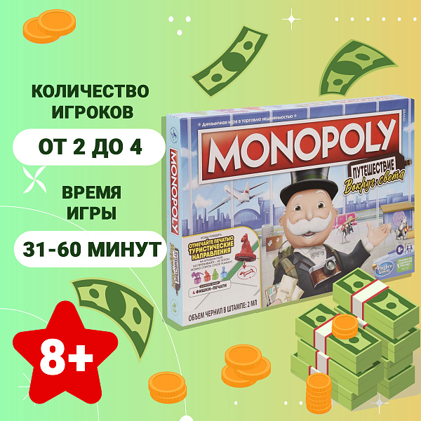 «Монополия» – это вариант одного из наиболее знаменитых настольных развлечений. Цель игры – стать мировым монополистом, получив в собственность как можно больше объектов.