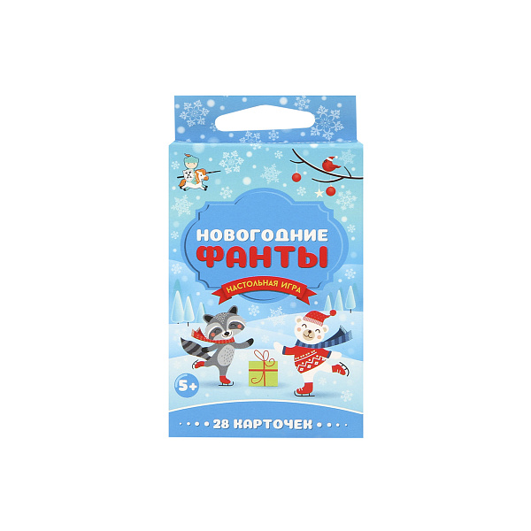 Настольная игра «Новогодние фанты» порадует не только детей, но и родителей. В комплекте 28 карточек с динамичными заданиями. Для игры тщательно перемешайте карточки и по очереди вытягивайте по одной карточке. Вытягивая карточку, участник вслух зачитывает задание, а остальные внимательно слушают. Выполняя задания, игроки развивают логику, кругозор, внимание и скорость реакции. Инструкция на обороте упаковки познакомит участников с правилами игры и погрузит в мир творчества.