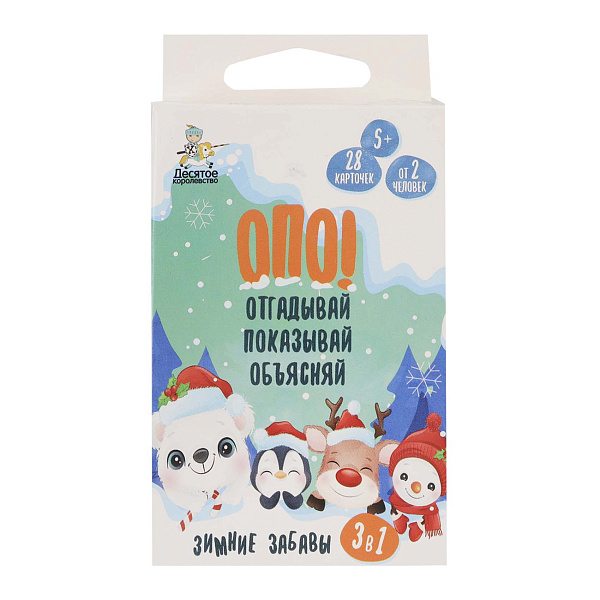Настольная игра «Отгадывай. Показывай. Объясняй» предлагает увлекательное приключение для детей от 5 лет. Игра упакована в компактную коробку с красочным дизайном, где изображены симпатичные герои зимних забав. Она привносит атмосферу веселья и способствует развитию различных навыков у детей.