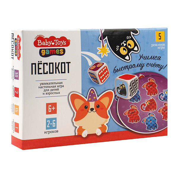 Настольная игра «Пёсокот» — увлекательное обучение счету для детей от 6 лет. Игра рассчитана на компанию от 2 до 6 человек, что делает ее отличным выбором для семейных вечеров и детских встреч.