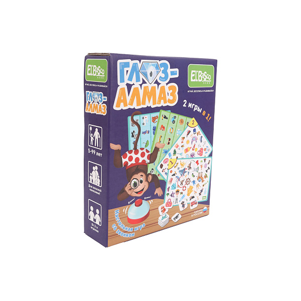 Увлекательная игра «Глаз алмаз» будет интересна любознательным дошкольникам. Для победы потребуется умение концентрировать внимание и быстрая реакция. Участнику необходимо отыскать на игровом поле изображение, аналогичное выпавшей ему карточке. Сообщить остальным игрокам о своем открытии можно с помощью звонка.