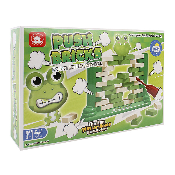 - В комплекте: основа с кирпичиками, фигурка лягушки, 2 инструмента для вытаскивания