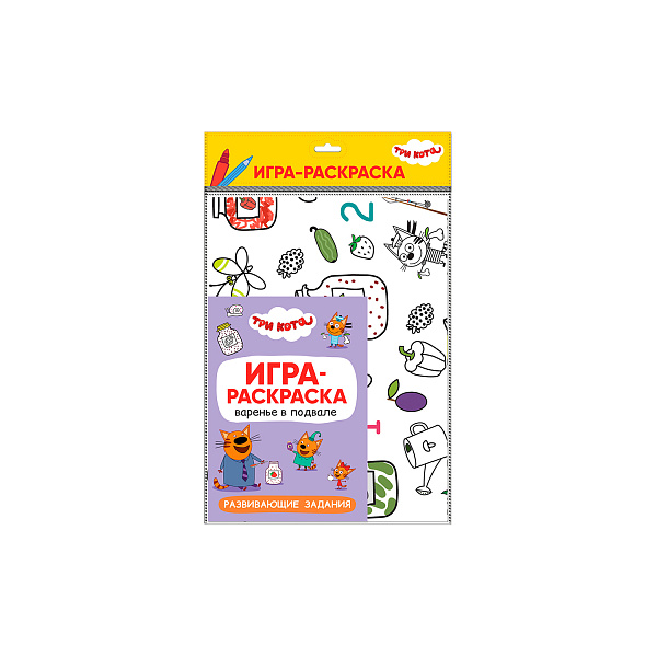 Занимательная игра-раскраска «Варенье в подвале» по мотивам мультфильма «Три кота» откроет перед маленьким художником немало возможностей. Полотно для раскрашивания представлено в виде большой скатерти, которая украсит детский стол на празднике или пикнике, стену или станет детским обучающим ковриком. А узоры на полотне – это контуры раскраски, которые малыши могут раскрасить по своему вкусу. В комплект входит небольшая книжка с увлекательными заданиями. Помогите ребенку найти фрукты и овощи, а также раскрасить пары одинаковых предметов или сосчитать фрукты и ягоды в банках и корзинах. Детская раскраска и развивает творческое мышление, моторику рук, улучшает логику и повышает внимание. Рекомендовано для детей с 2 лет.