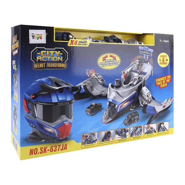 Игровая трасса-трансформер в виде шлема — это инновационный набор, который привлечет внимание маленьких любителей приключений. Внешний вид трассы выполнен в виде шлема синего и красного цветов. При трансформации шлем превращается в захватывающую трассу с крутыми поворотами, подъемами и парковочными зонами.