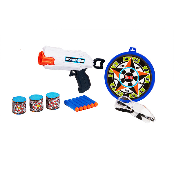 Детский игрушечный набор состоит из оружия, мишеней 2 типов, защитных очков и патронов. Это веселое развлечение для компании детей в возрасте от 3 лет. При этом даже в одиночку малыш может соревноваться с самим собой, упражняться в меткости, скорости и координации движений.