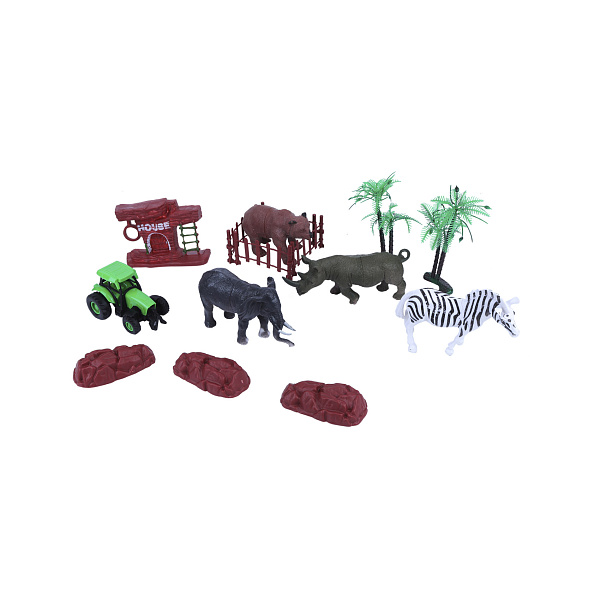 Игровой набор «Фигурки. Дикие животные» познакомит ребенка с работой заповедника дикой природы, на территории которого под охраной человека обитают дикие животные. В наборе представлены реалистичные пластиковые фигурки медведя, слона, носорога и зебры. Также к набору прилагается пластиковый забор, из которого можно соорудить загон, ветвистые пальмы, каменные глыбы, которыми можно украсить территорию заповедника, а также жилой домик и трактор персонала, управляющего заповедником. Все фигурки и аксессуары продаются в пластиковом ведерке с отверстиями по периметру, которые позволяют воздуху свободно циркулировать.