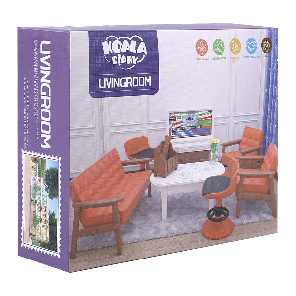 Игровой набор «Гостиная для питомцев» представляет собой очаровательное и красочное решение для создания уютной обстановки для маленьких друзей. Комплект включает в себя элегантный диван и два кресла с мягкими оранжевыми сиденьями, что добавляет яркости и уюта в интерьер игрушечной комнаты.