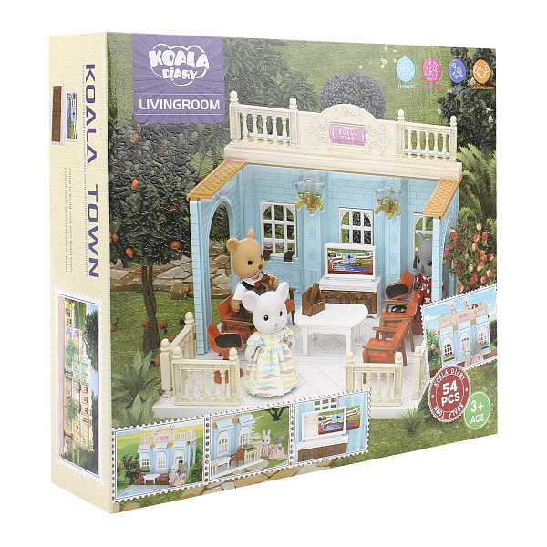 Набор «Питомцы в гостинице» станет основой для интересных и увлекательных игр. В комплект входит домик в пастельных тонах с элегантным фасадом и деталями, такими как изящные колонны и цветочные горшки. Внутри оборудован современный интерьер: мягкий диван, два кресла и яркие барные стулья, которые создают атмосферу уюта. Дополняют мебель журнальный стол и полка с телевизором, где можно с легкостью менять изображения на карточках.