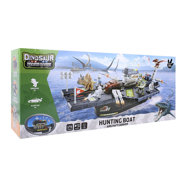 Игровой набор «Охотничий борт» с динозаврами станет отличным подарком для мальчика. Набор включает два ярких динозавра и два металлических внедорожника. Основной элемент —судно с множеством деталей. На борту расположены трапы для машин и яркие кнопки для стрельбы из пушек.