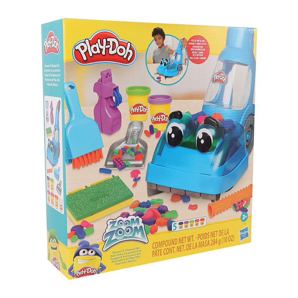 В комплекте находятся пять баночек пластилина Play-Doh разных цветов, что позволяет экспериментировать с созданием ярких и разнообразных фигур. Кроме того, в набор входят специальные аксессуары, такие как щетка и совок, для имитации процесса уборки.