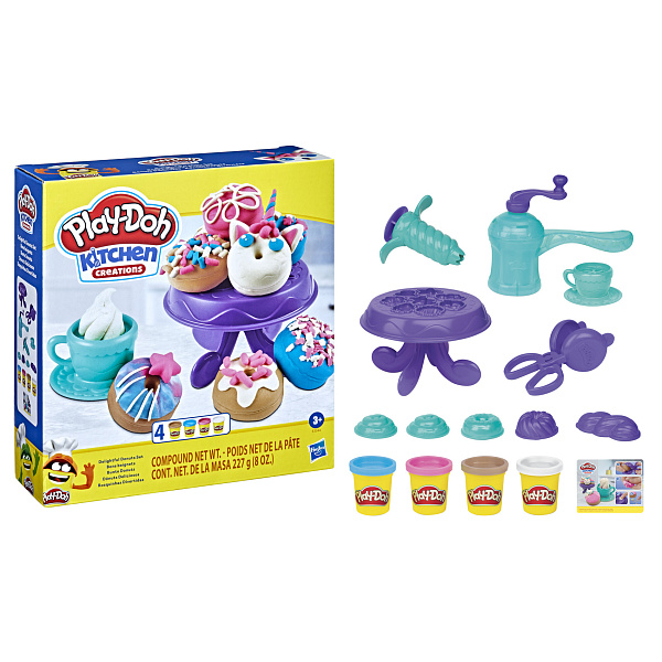 Этот набор массы для лепки поможет вашему ребенку почувствовать себя настоящим кулинарным гением. Дети смогут создавать удивительные пончики ярких и красочных цветов и начинок. В комплекте представлено множество аксессуаров, с помощью которых можно воплотить в жизнь самые увлекательные кулинарные идеи, будь то разноцветная глазурь, взбитые сливки или любые другие украшения для этого блюда. Дети смогут играть с массой для лепки как одни, так и устроить незабываемое чаепитие в компании своих друзей.