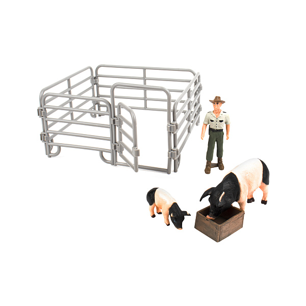 Материал изготовления — пластмасса. В наборе шесть животных на ферме, загон и фигурка самого фермера. Ваш ребенок сможет придумывать захватывающие сюжеты и воплощать их в реальность, особенно если в арсенале у него есть другие животные.