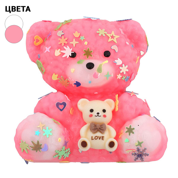 Игрушка-антистресс сквиш в форме медвежонка изготовлена из мягкого и гибкого силикона. Легко сжимается, растягивается, а потом возвращается в исходную форму. Помогает расслабиться и снять напряжение. Игрушка дополнена маленькой фигуркой мишки в лапках и яркими блестящими элементами, которые создают привлекательную текстуру и вызывают желание все время играть с ней.