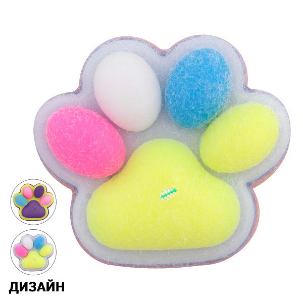 Таба-лапка – популярная антистресс игрушка, которая выделяется яркими насыщенными цветами и интересным дизайном. Поверхность украшена мелкой присыпкой и имитирует шерстистую текстуру, что делает лапку необычайно приятной на ощупь и добавляет тактильного комфорта при сжатии. Такая комбинация дарит новые ощущения и усиливает удовольствие от игры с ней.