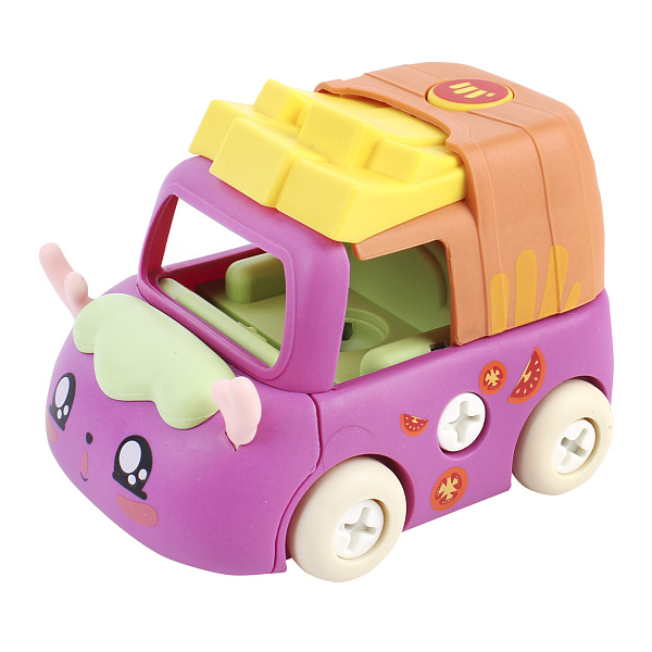 Игрушка «Car Food» выполнена в ярких цветах, которые привлекают внимание и стимулируют интерес к игре. Конструкция машинки позволяет легко ее разбирать и собирать с помощью специальной отвертки, входящей в комплект. Это развивает у ребенка навыки конструирования и понимание работы механизмов.
