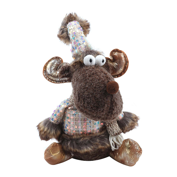 Игрушка декоративная новогодняя Лось в блестящем костюме коричневый 36см