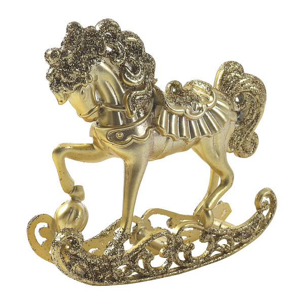 Игрушка елочная Лошадка-качалка с глиттером золотая лофт 9,5см