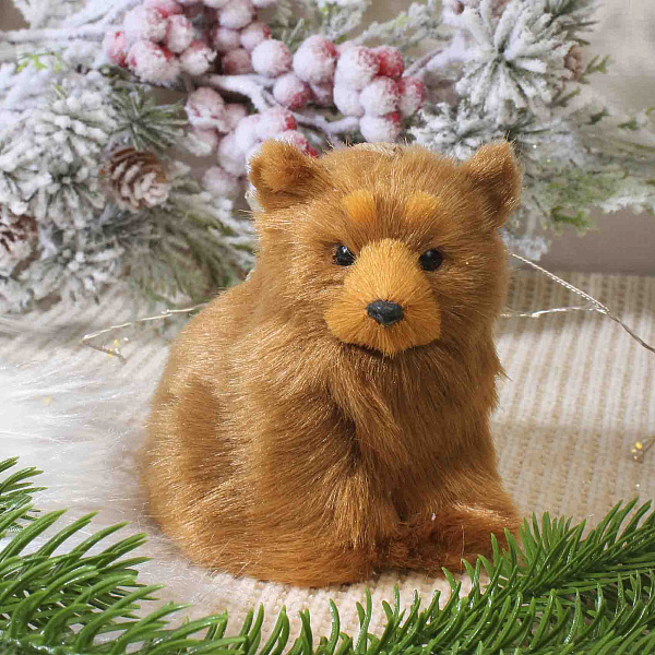 Игрушка елочная Медведь реалистичный меховой коричневый 8см