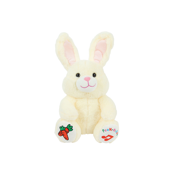 Милый и дружелюбный зайчик займет достойное место в игротеке ребенка. С ним так приятно и интересно играть. При нажатии на лапу зайчик издает забавные звуки. Также он умеет опускать уши, закрывая ими глаза.