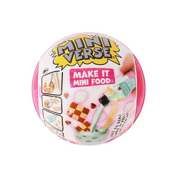 Внутри этого шара-сюрприза скрывается коллекционные игрушки в виде мини-версий еды из серии «Закусочная Miniverse». Но чтобы получить готовое блюдо, вначале его придется приготовить. Для этого малыш должен распаковать содержимое, затем, следуя инструкции, объединить ингредиенты, подержать их под УФ-лучами или подождать, пока они сами затвердеют. Узнать, какой рецепт скрывается в шаре, можно только открыв его.