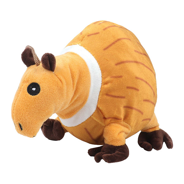 Мягкая игрушка «Бурбалони Лулилоли» - это очаровательный пушистый зверек, напоминающий капибару и пухлым тельцем. Основной цвет - теплый оранжево-коричневый, с белой «опаской» на шее и коричневыми полосками по спинке. Глаза - большие, выразительные, с черными зрачками, ушки - маленькие и закругленные. Игрушка выполнена из мягкого, приятного на ощупь плюша - безопасного для детей, гипоаллергенного и устойчивого к стирке. Наполнитель - синтетический волоконный материал, обеспечивающий упругость и сохранение формы. Высота - 20 см, что делает ее удобной для обнимашек, игр и переноски.