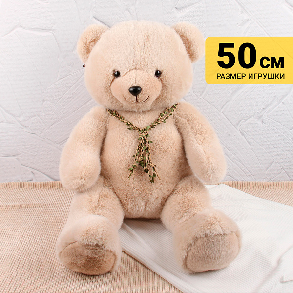 Мягкая игрушка «Бурый мишка» — это плюшевый друг, который создает уют в детской комнате. Тело набито мягким и объемным наполнителем. Мех пушистый, приятный на ощупь. Лицо оформлено контрастной тканью светлее основного цвета. Глаза и нос — черные, пластиковые, надежно закреплены. На шее — декоративный элемент из ткани, имитирующий веточку с листьями. Лапы отделаны тканью того же оттенка, подушечки лапок выполнены в более темном коричневом цвете с точками.