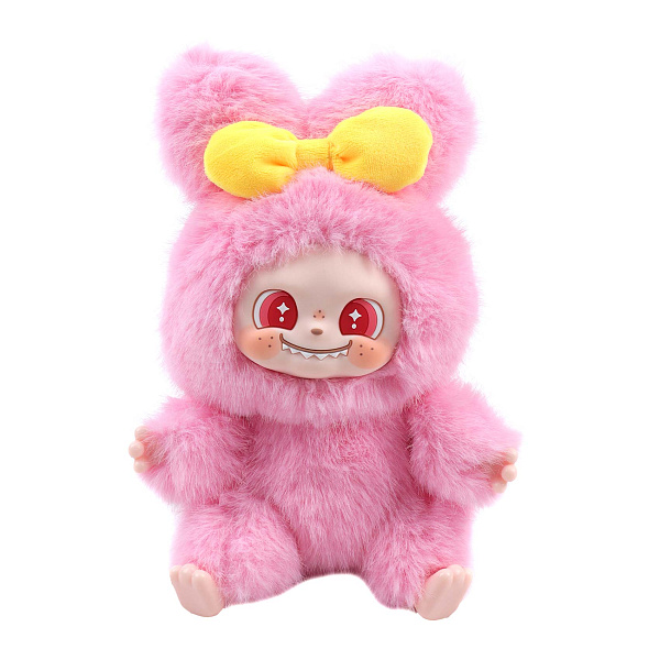 Подвес «Добрый монстрик» выполнен в оригинальном стиле Лабубу. Игрушка ростом 16,5 см имеет яркий розовый цвет и мягкий пушистый корпус. На голове располагаются большие ушки с желтым бантом, а выражение лица украшено большими глазами со звездочками, веснушками и забавными зубками. Фигурка легко становится забавным дополнением и украшением.