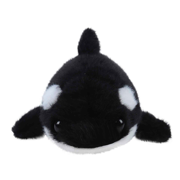 Мягкая игрушка «Косатка» имеет длину 22 сантиметра. Материал изготовления — текстиль с имитацией меха. Окрас сочетает темно-синий и белый цвета. Пластиковые глаза черного цвета четко выделяются на морде. Форма игрушки точно передает облик морского животного.