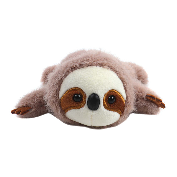Мягкая игрушка «Ленивец» — это компактная текстильная фигурка, выполненная из высококачественного плюша. Игрушка имеет длину 14 см и повторяет характерную позу ленивца: тело вытянуто, лапы слегка согнуты, голова симметрично расположена на туловище. Окрас выполнен в приглушенных тонах: основное тело — светло-коричневый плюш, мордочка — белая, контур глаз и ушей — темно-коричневый, нос — черный пластиковый элемент. На кончиках лап присутствуют детализированные швы, имитирующие когти.