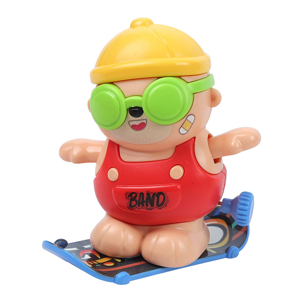 Конструкция состоит из пластикового корпуса: фигурка медвежонка в стильной одежде с надписью «BAND», очках и кепке, сидящая на миниатюрном скейтборде.