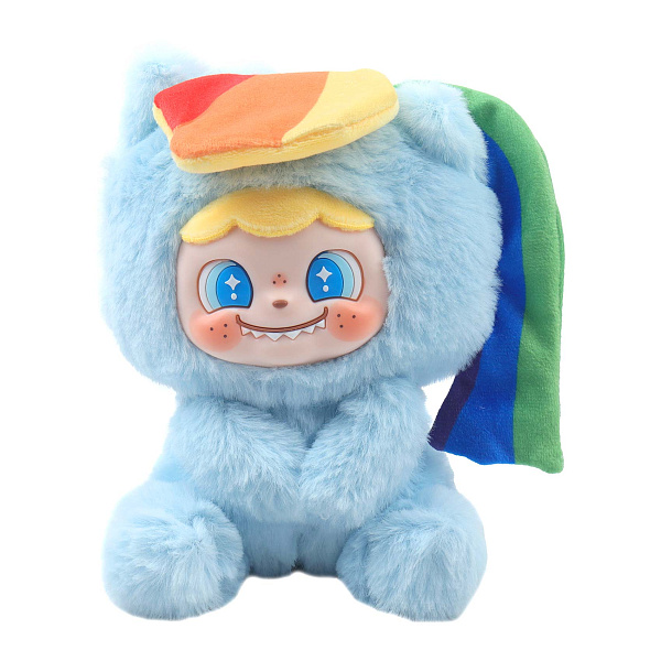 Игрушка «Монстрик Радуга» высотой 16,5 см — это оригинальный и мягкий персонаж в голубом плюшевом костюме с забавной мордочкой и яркими радужными элементами, включая хвост и декоративный элемент на голове. Мягкий текстильный корпус с синтетическим наполнителем обеспечивает приятные тактильные ощущения и удобство для игры или коллекционирования.