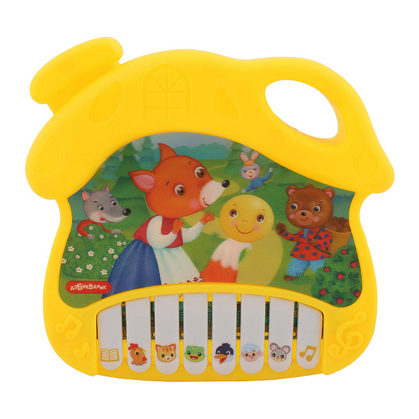 Игрушка включает в себя 60 песенок, мелодий и звуков, предлагая детям увлекательное музыкальное путешествие. В ней доступны две известные сказки: «Колобок» и «Курочка Ряба», которые оживают с помощью веселого голосового сопровождения.