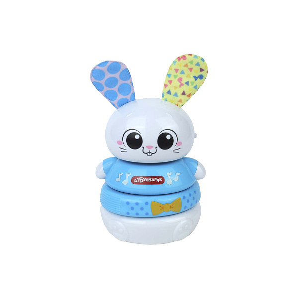 Забавный зайчик станет лучшим другом ребенка старше 2 лет. Игрушка с функциями пирамидки имеет звуковое сопровождение. При нажатии на голову можно прослушать 20 песен, фраз, различных звуков. Игра поднимет настроение, подарит незабываемые впечатления.